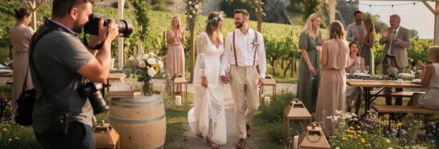 La réussite d’un reportage photo mariage champêtre dans le canton de Vaud repose aussi sur une excellente coordination avec les wedding planners spécialisés. Ces organisateurs connaissent parfaitement les contraintes logistiques d’un mariage en plein air : horaires de lumière, plan B en cas de pluie, circulation entre vignobles et domaines ruraux. Un premier échange détaillé permet d’anticiper les moments clés à fort potentiel photographique : arrivée en calèche, cérémonie sous une tonnelle fleurie, lancer de bouquet avec vue sur le Léman.